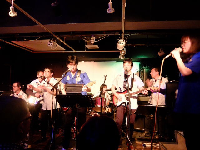 今回で9回目、Goodiesがオープニングアクトで盛り上げてくれたり、互いのバンドからギターやキーボードの共演があったりで楽しいライブになりました。 お馴染みのお客様も、初めてのお客様も、ありがとうございました。 <1 Stage> 1.Take it easy 2.The Loco Motion 3.砂に消えた涙 4.Daydream believer 5.Bring it on home to me 6.Be My Baby 7.素敵な16才 8.Da Doo Ron Ron 9.Venus 10.Johnny B.Goode <2 Stage> 11.Hotel California 12.Call Me 13.砂に書いたラブレター 14.Give me one more shot 15.キッスは目にして 16.Hello Mary Lou 17.Xanadu 18.Let's Twist Again 19.君の瞳に恋してる <アンコール> 18.Dancing Queen |